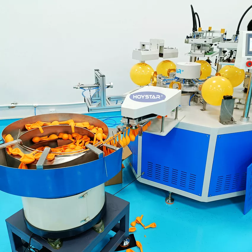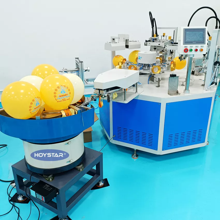 HOYSTAR es un fabricante y proveedor confiable en China; Esta máquina de serigrafía de globos de 2 colores HOYSTAR con alimentador automático está diseñada para imprimir en globos de látex. Equipado con mesa de trabajo giratoria, carga automática, soplado automático, rotación automática, secado automático, funciones de descarga automática. Control de pantalla táctil PLC, interfaz fácil de usar para una operación segura e intuitiva. La máquina combina velocidad, precisión y facilidad de uso.