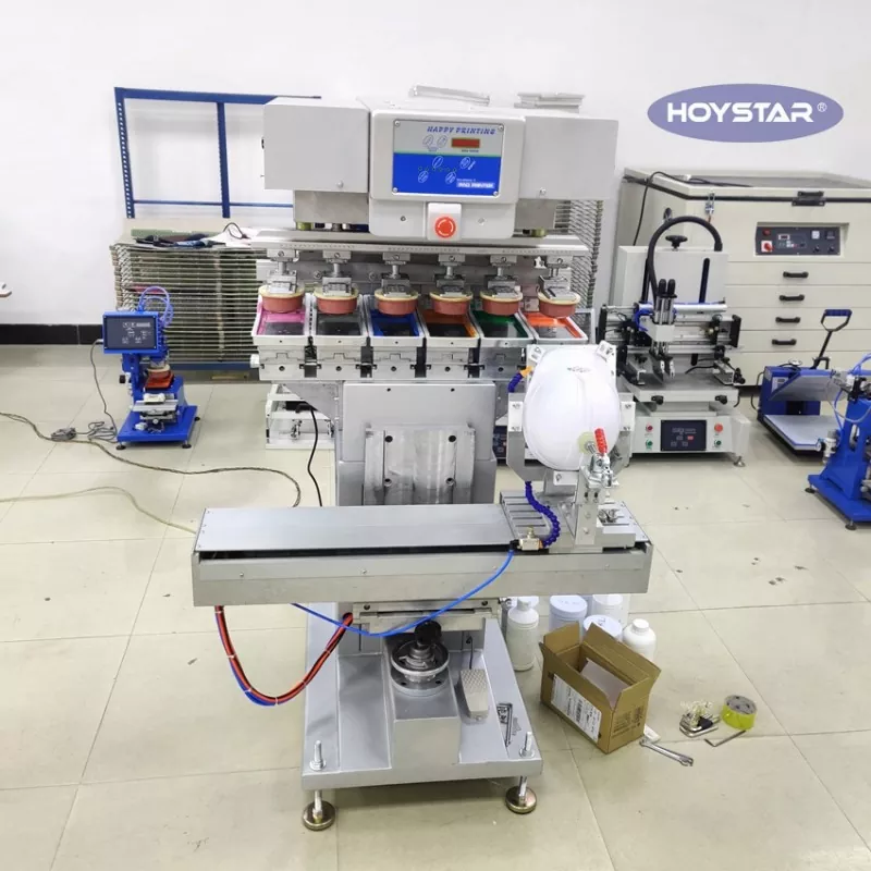 Como fabricante y proveedor profesional de China, la máquina de tampografía para cascos de seguridad HOYSTAR de 6 colores está equipada con un panel de control de pantalla táctil PLC de fácil operación. Esta máquina está diseñada para imprimir en superficies curvas e irregulares como cascos. Esta máquina versátil es ideal para una variedad de industrias que incluyen equipos de seguridad y protección, equipos deportivos, repuestos para automóviles, artículos promocionales, carcasas electrónicas y juguetes. Y tiene una altura de mesa ajustable para adaptarse a varias dimensiones del producto.