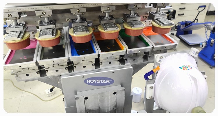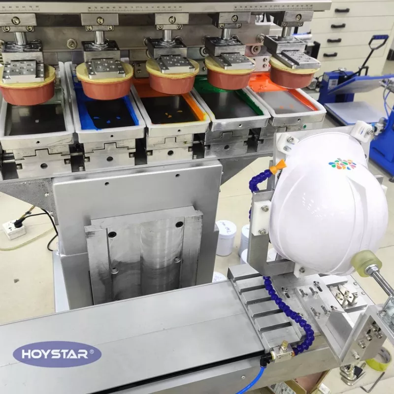 Como fabricante profesional en China, nos gustaría ofrecerle la máquina tampográfica para cascos de seguridad de 6 colores HOYSTAR de alta eficiencia, que está especialmente diseñada para imprimir en cascos de seguridad. Diseñado para completar la impresión a 6 colores en un solo ciclo de producción, sin necesidad de configuraciones repetidas y reduciendo significativamente el tiempo de producción. Más allá de los cascos, su diseño flexible también permite una impresión perfecta en una variedad de productos de formas similares, como cascos protectores, carcasas de plástico para herramientas y pequeños accesorios rígidos.