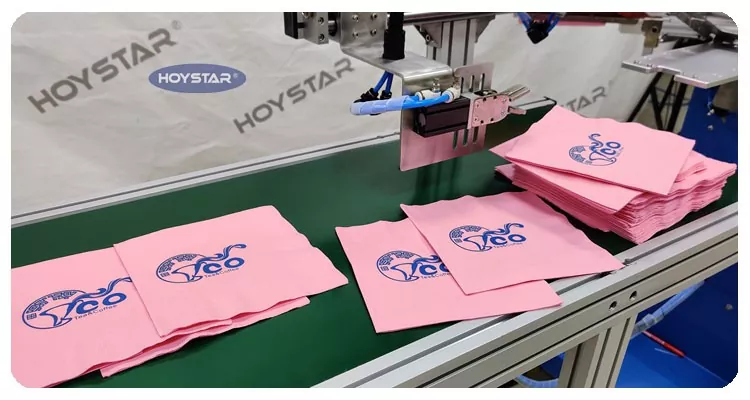 Como fabricante y proveedor profesional, HOYSTAR Máquina serigráfica automática de servilletas de 1 color. está diseñado específicamente para la impresión totalmente automática en servilletas. Su proceso de impresión simplificado se desarrolla de la siguiente manera: carga manual de las servilletas en la máquina, impresión automática del primer color, secado automático, descarga automática y recogida automática del producto.