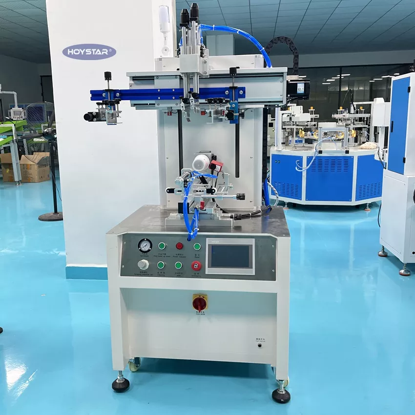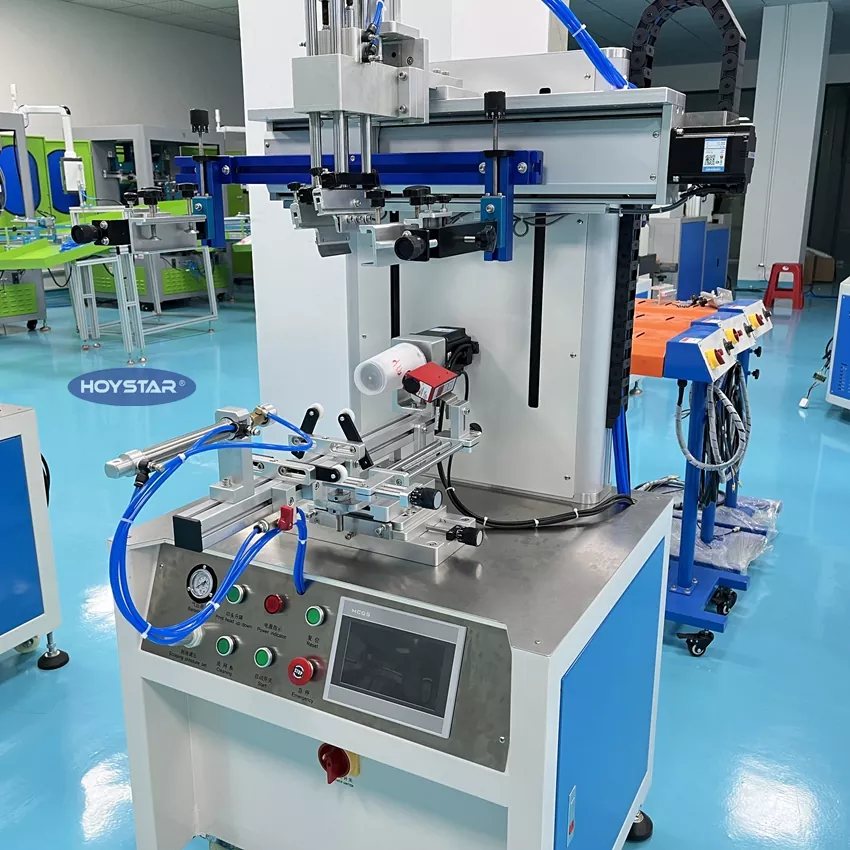 Como fabricante profesional en China, nos gustaría ofrecerle una máquina de serigrafía cilíndrica para vasos de botellas CNC HOYSTAR de alta eficiencia.