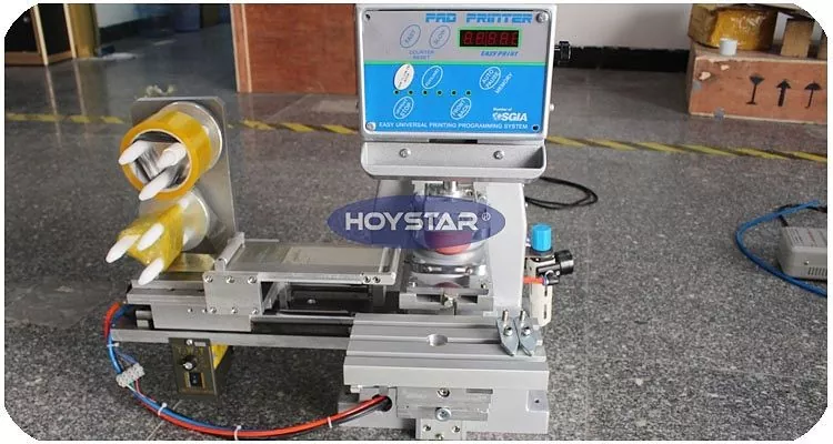 Como fabricante profesional en China, nos gustaría ofrecerle una impresora pad de escritorio de 1 color HOYSTAR de alta eficiencia con sistema de limpieza automática. Esta máquina de tampografía, equipada con un tintero cerrado y un sistema de limpieza automático, es ideal para imprimir sobre una amplia gama de materiales y productos. Sus aplicaciones incluyen plásticos, ferretería, electrónica, juguetes, envases de cosméticos, artículos eléctricos, obsequios y premios, tapas de botellas, artículos de papelería, artículos de cerámica y anuncios promocionales. El sistema de limpieza automático integrado mejora significativamente la eficiencia al ahorrar tiempo y simplificar la operación.
