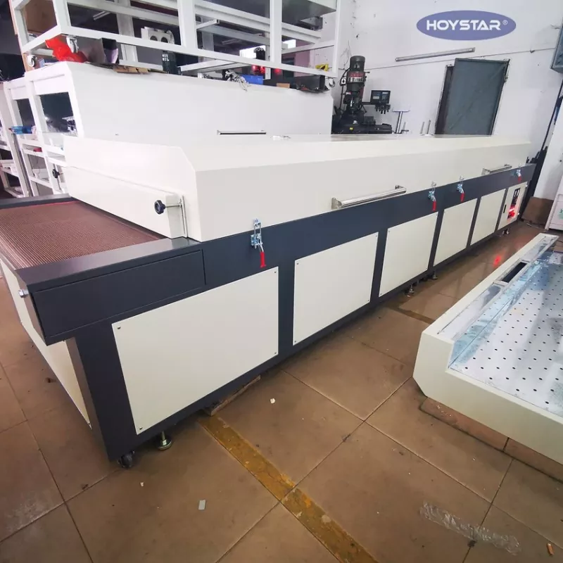 Como fabricante profesional en China, nos gustaría ofrecerle la máquina secadora por infrarrojos grande con cinta transportadora HOYSTAR de alta eficiencia. Adecuado para secar diversos productos, como textiles, banderas, pancartas, láminas de aluminio, vidrio, papel y plástico, después de procesos como serigrafía, pintura, aplicación de adhesivos termoendurecibles, impresión por inyección de tinta y más.