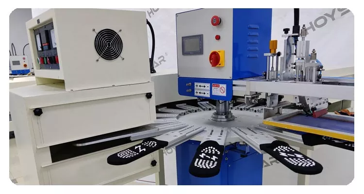 Como fabricante profesional en China, nos gustaría ofrecerle la máquina de serigrafía para calcetines de gran tamaño HOYSTAR de alta velocidad. Viene con una máquina de 16 estaciones de trabajo adecuada para producción de gran volumen. Cuenta con PLC avanzado y control de pantalla táctil que puede imprimir suelas y tacones de calcetines. Un túnel de secado por infrarrojos integrado garantiza un secado eficaz del silicio y la tinta.
