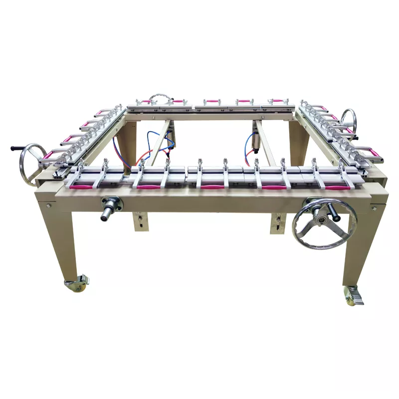 La máquina estiradora del marco de la pantalla se utiliza para estirar la pantalla de manera uniforme y firme sobre un marco de aluminio o madera, asegurando una tensión constante de la pantalla; este es un factor clave para lograr una impresión uniforme de la tinta durante el proceso de impresión.