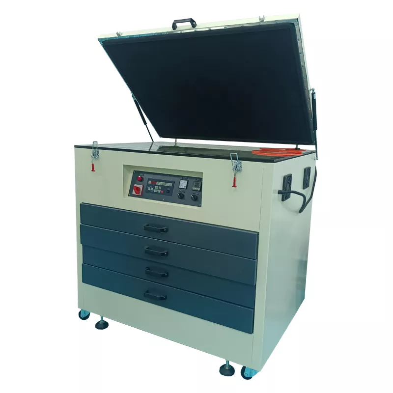 La máquina de exposición UV es un equipo clave para transferir patrones al marco de la pantalla. Utilizan radiación ultravioleta para curar la emulsión fotosensible en el marco de la pantalla y crean patrones de plantilla precisos basados en los dibujos de diseño.