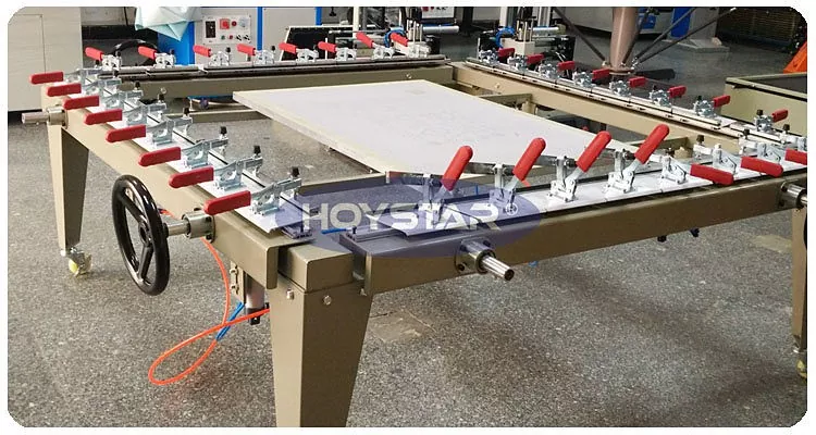 Como fabricante profesional en China, nos gustaría ofrecerle la máquina estiradora de cribas HOYSTAR. Esta máquina integra las ventajas de los modelos nacionales e internacionales, presentando una estructura compacta, alta tensión, operación conveniente y un perfil excelente. Adecuado para la fabricación de marcos de pantallas publicitarias de gran formato y la producción por lotes profesional de marcos de pantallas. La máquina garantiza un rendimiento eficiente, estable y confiable, lo que la hace adecuada para las demandas de la fabricación profesional de marcos para serigrafía.