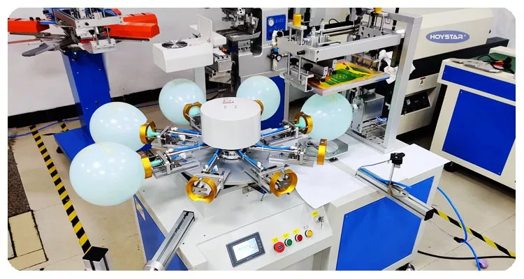 Como fabricante profesional en China, nos gustaría ofrecerle la máquina serigráfica de globos de látex de un solo color HOYSTAR de alta eficiencia. Nuestras máquinas utilizan PLC y control de pantalla táctil y se utilizan principalmente para imprimir varios tipos de globos de látex. La máquina puede imprimir en los 4 lados de los globos y viene con un horno de secado que puede secar bien la tinta.