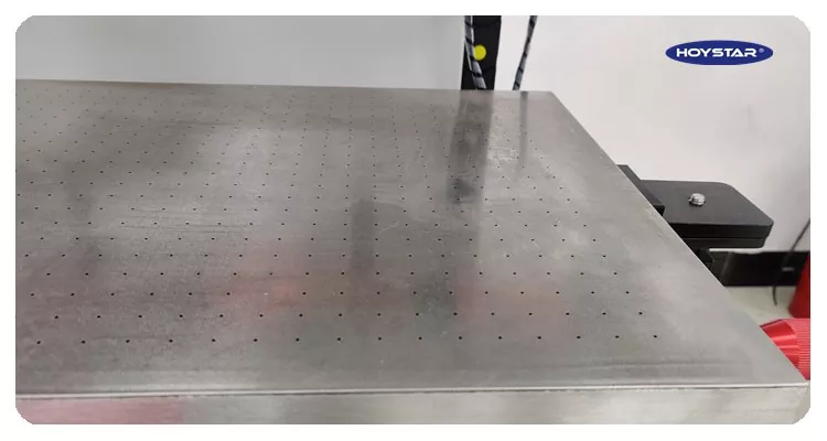 12. Mesa de trabajo de alta resistencia con orificios de succión distribuidos uniformemente y fuerte absorción de vacío para un registro preciso.